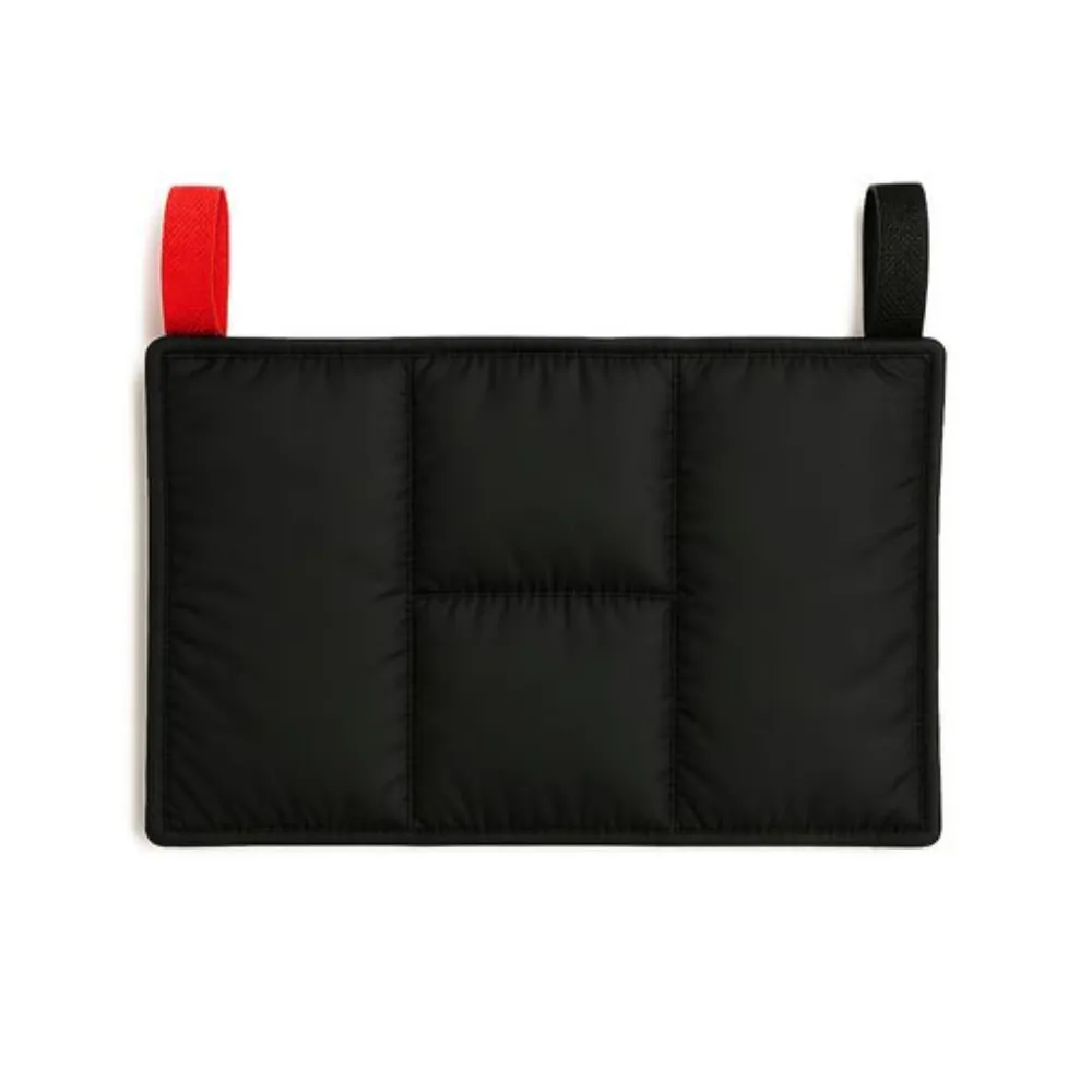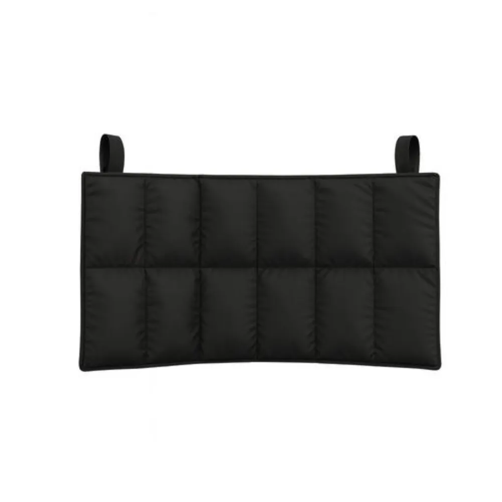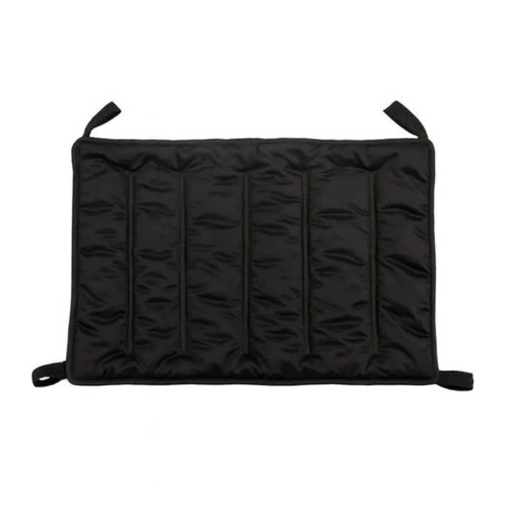 Rectangular, acolchado en paneles, con cierre tipo velcro o solapa; costuras reforzadas.